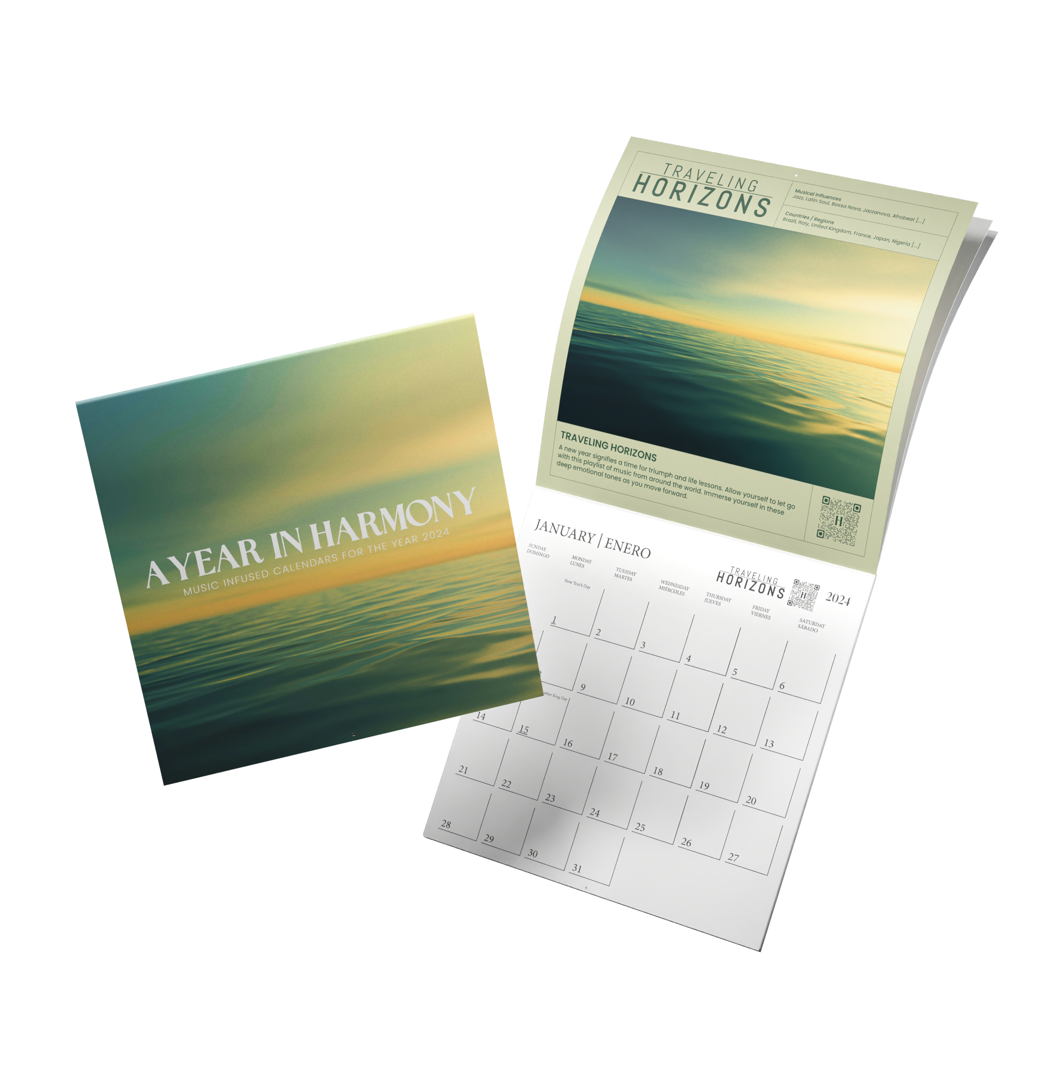 These interactive calendars have QR codes for each month, that lead to monthly music playlists frequently updated. Playlists are provided through Apple Music and Spotify.